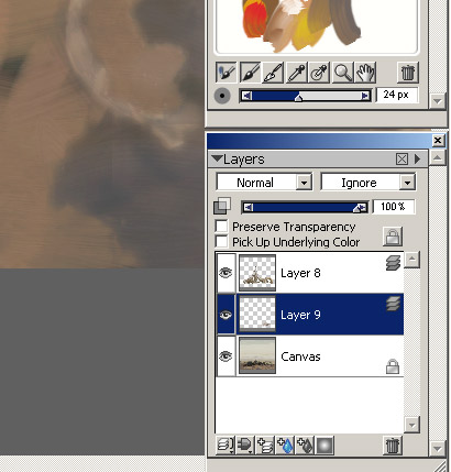 В Photoshop сохраняюсь в PSD и открываю картинку в Painter. Создаю дополнительный слой (в данном случае Layer 9)
