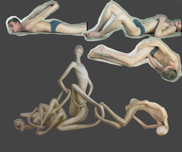 Мне повезло с мужской моделью. Этот парень прекрасно соответствует пластике форм моей идеи. Большое ему Спасибо! Съемку провел по «ключевым узлам» моего эскиза. Соблюдая одинаковость освещения.
