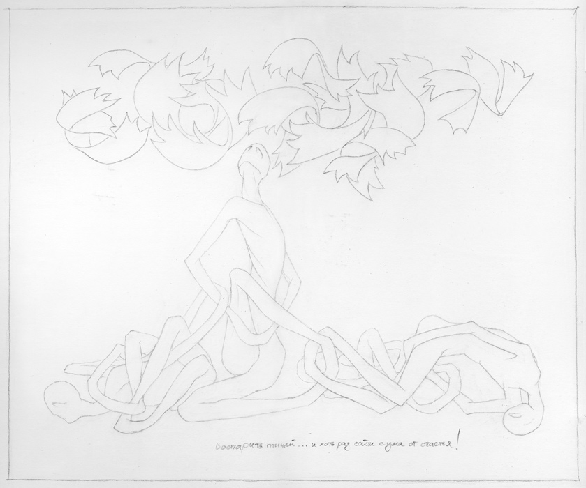 Последняя работа давалась очень тяжело… Постоянно что-то видоизменяя и переделывая — сомнения продолжались более трех лет. По замыслу она должна была подытожить мои душевные терзания, как бы подводя черту: «Хоть раз сойти с ума от счастья…»